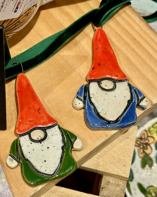 Ceramic Gnome Christmas Holiday Ornament Stoneware Pottery