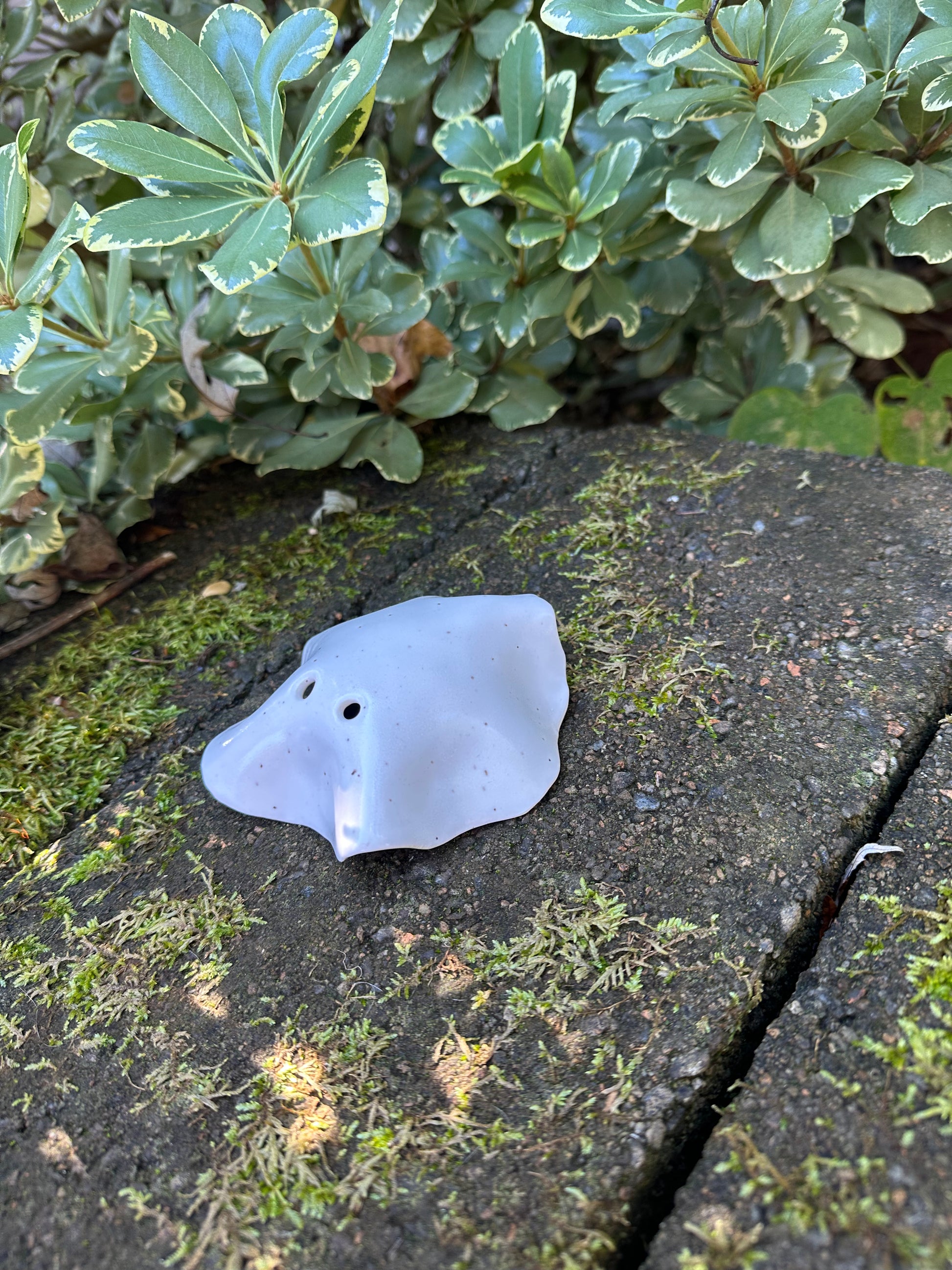 This particular ghost has white glaze and was made by hand to look like a bedsheet ghost.