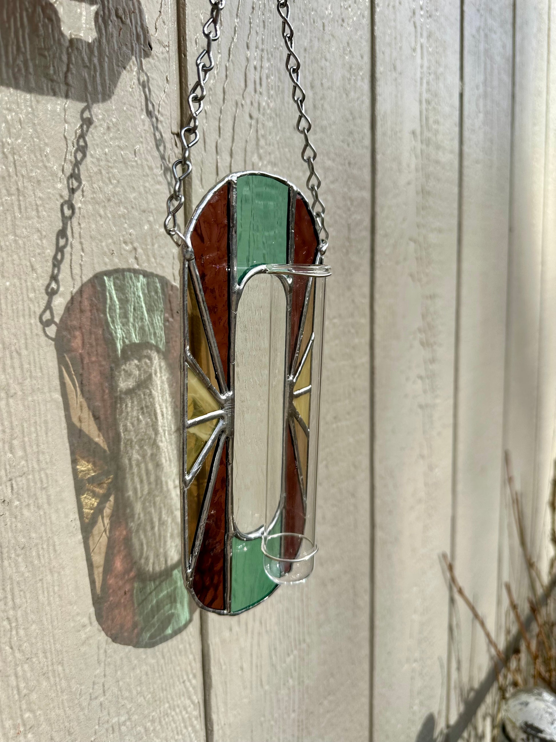Handmade Stained Glass Plant Propagation Station Suncatcher Sun Catcher Art Deco Style Window Hanging